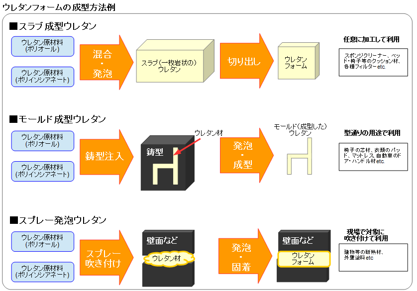 ここでは、代表的なウレタンの種類と利用されているシーンをピックアップしてご紹介します。